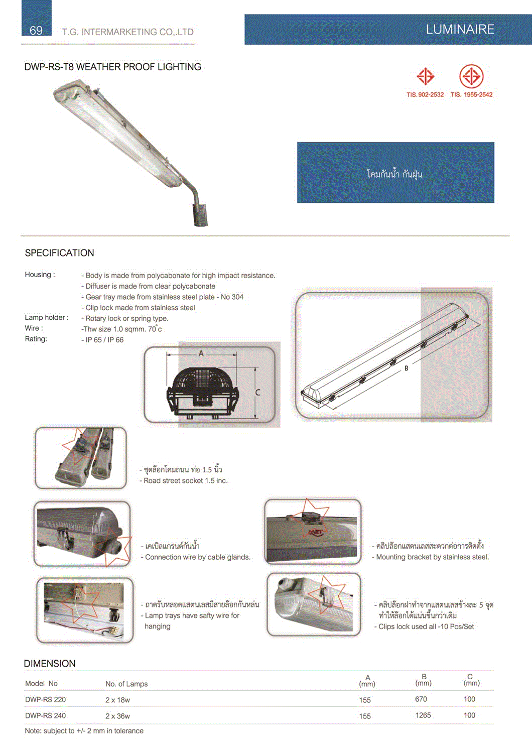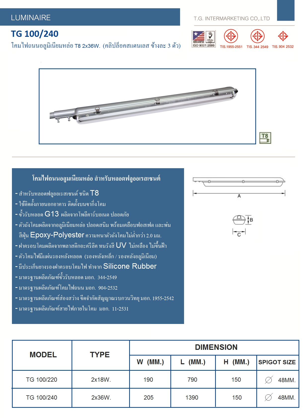 โคมถนน T8 IP65