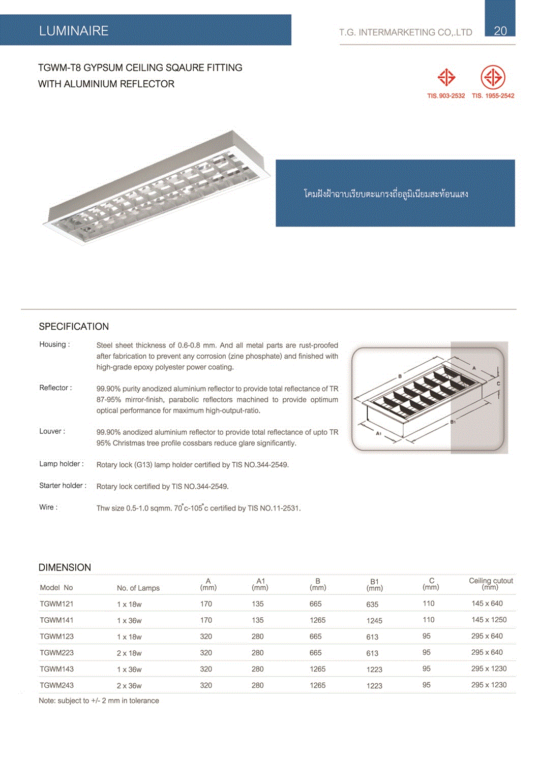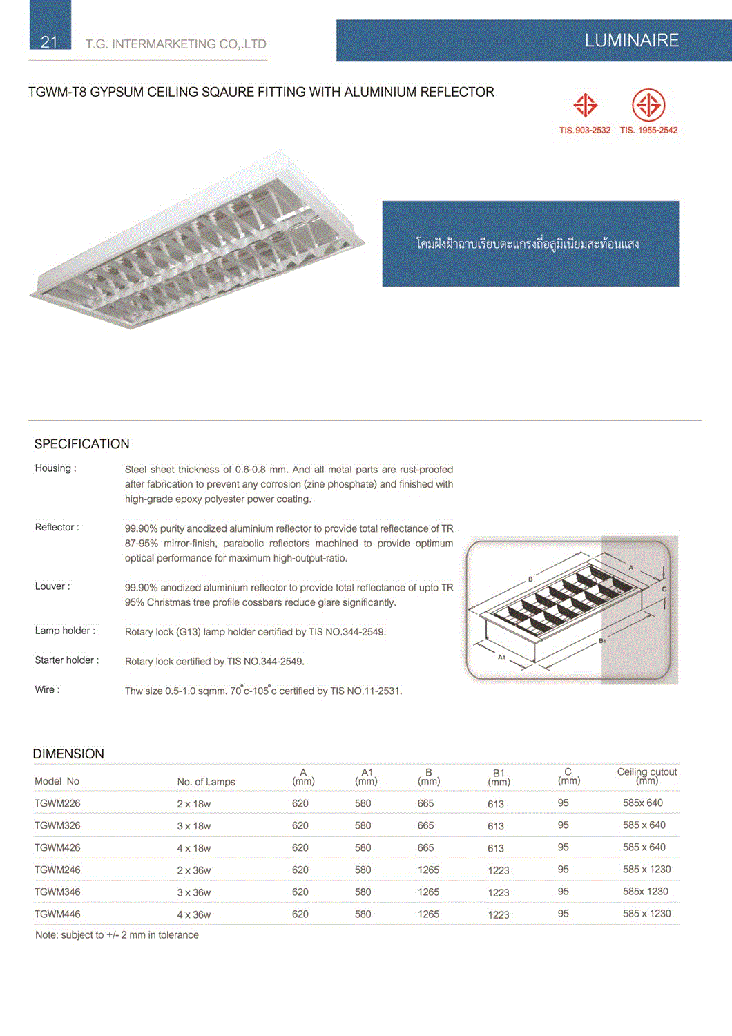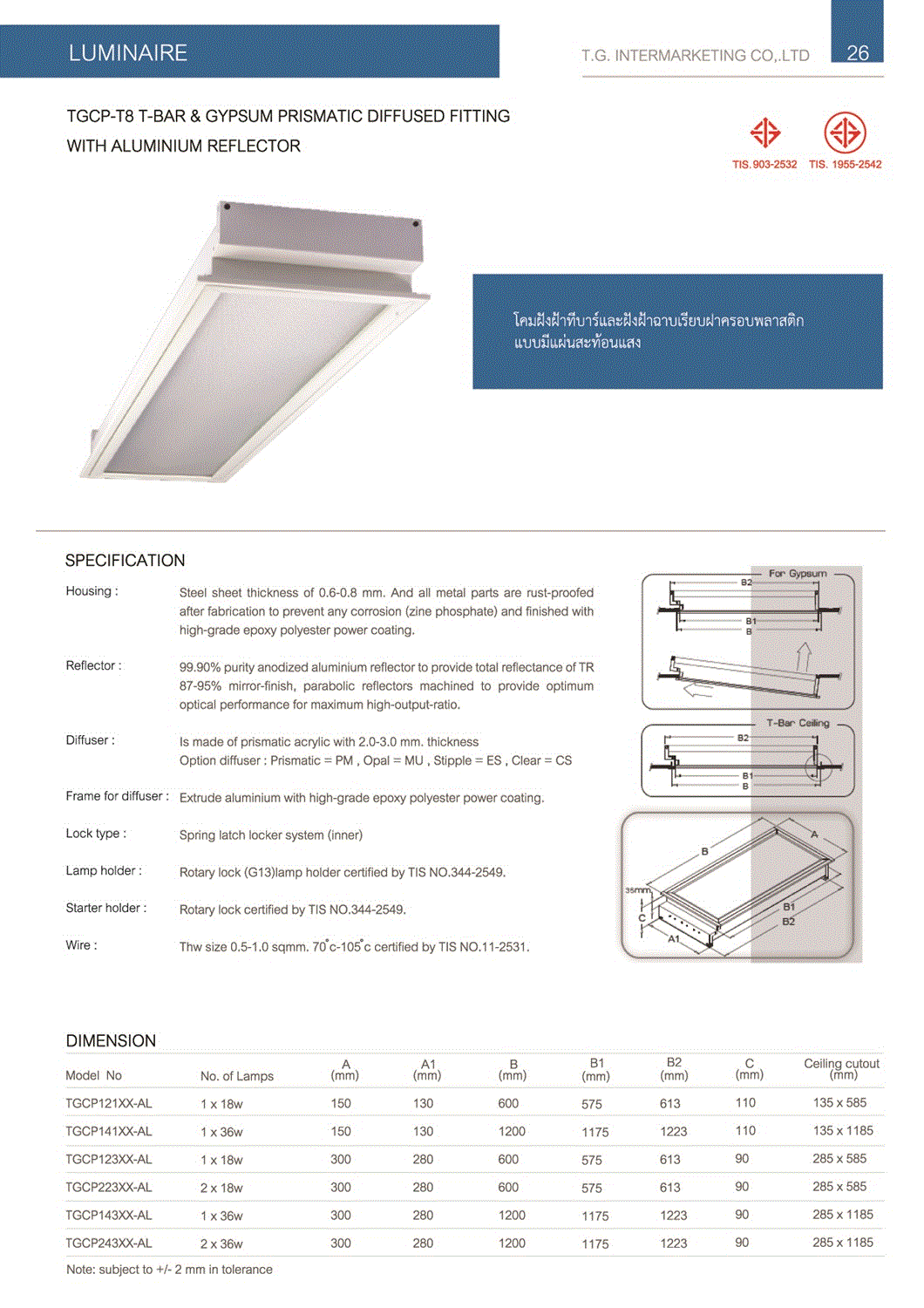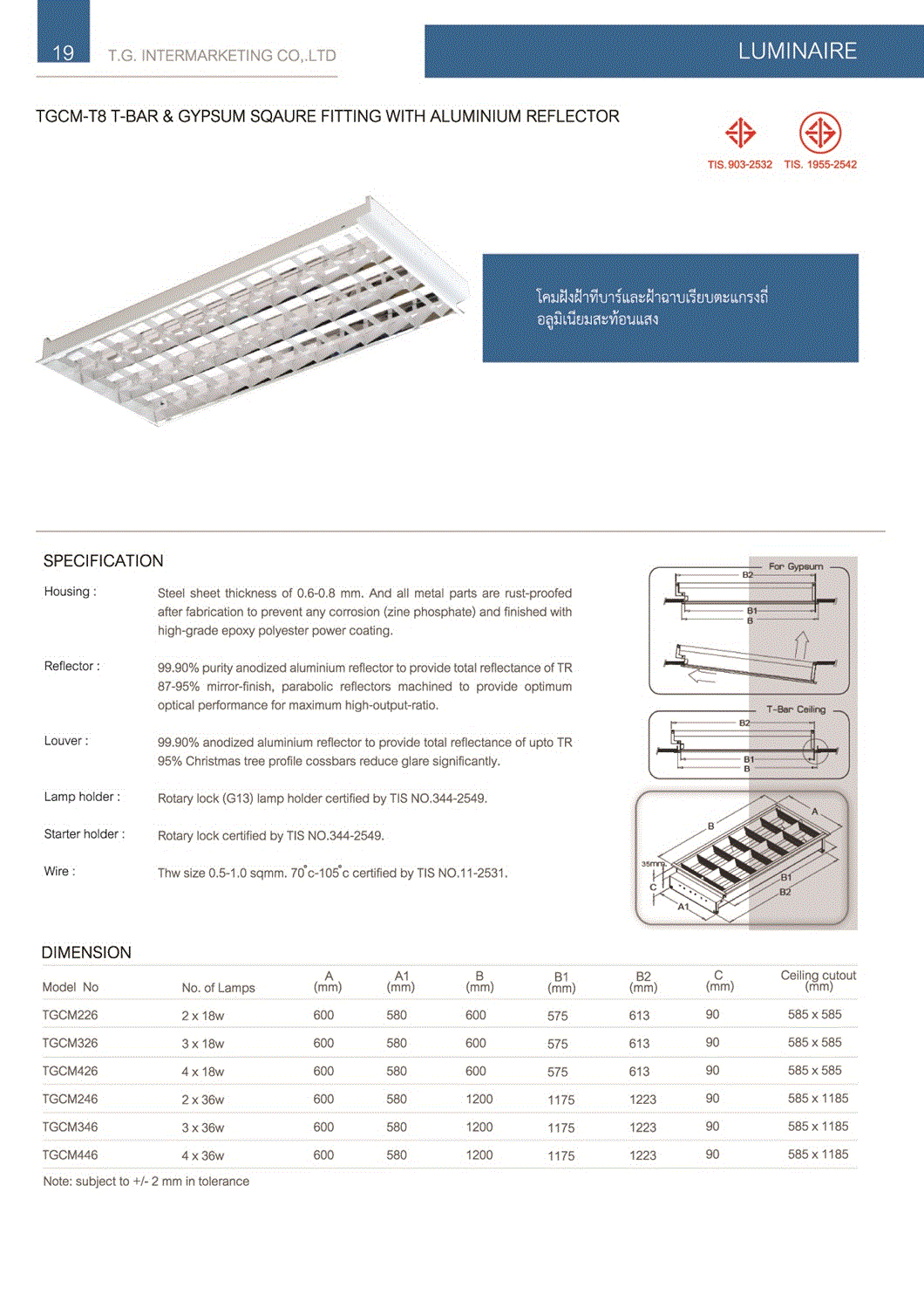 โคมตะแกรงฝังฝ้ายิปซั่ม T8
