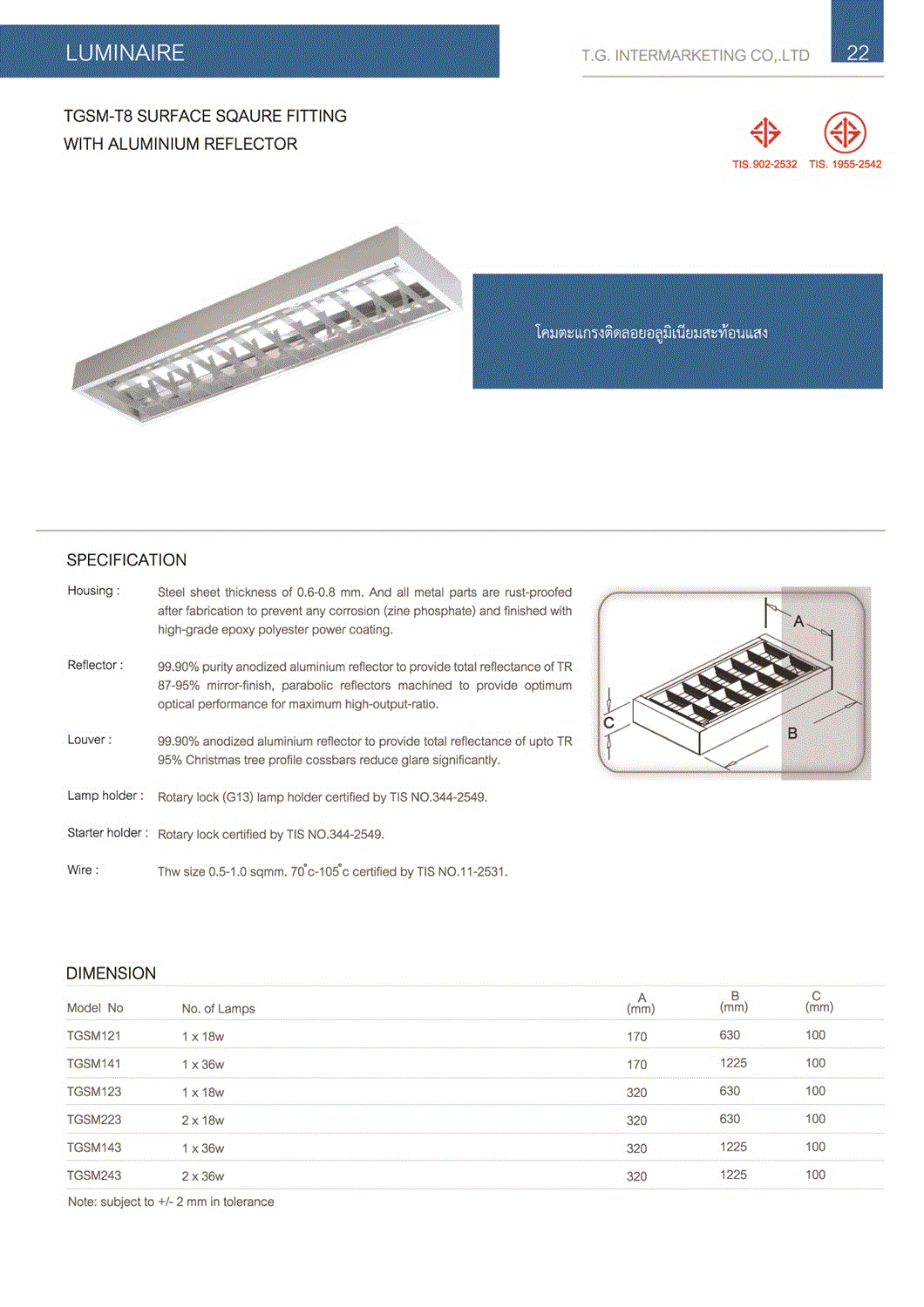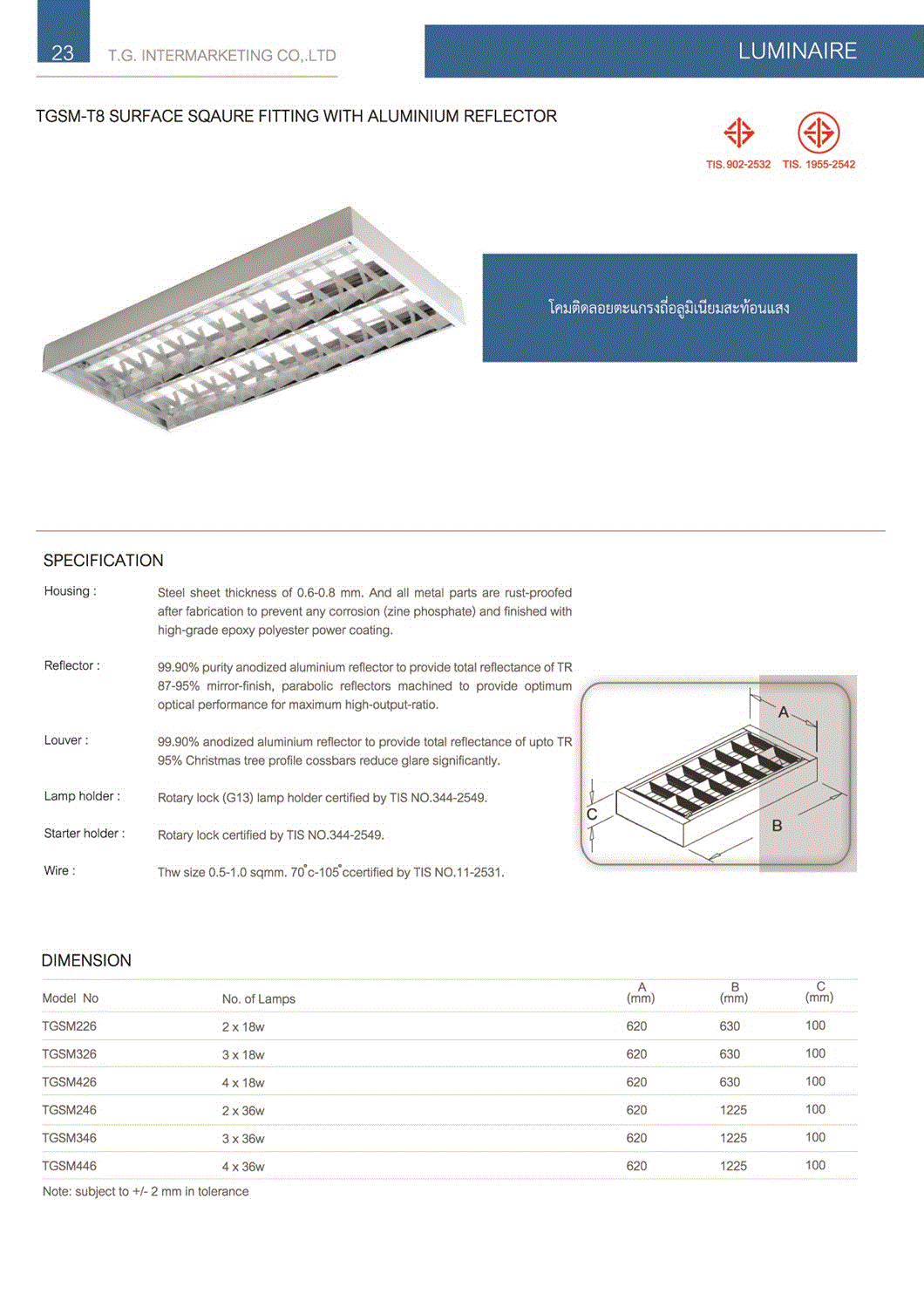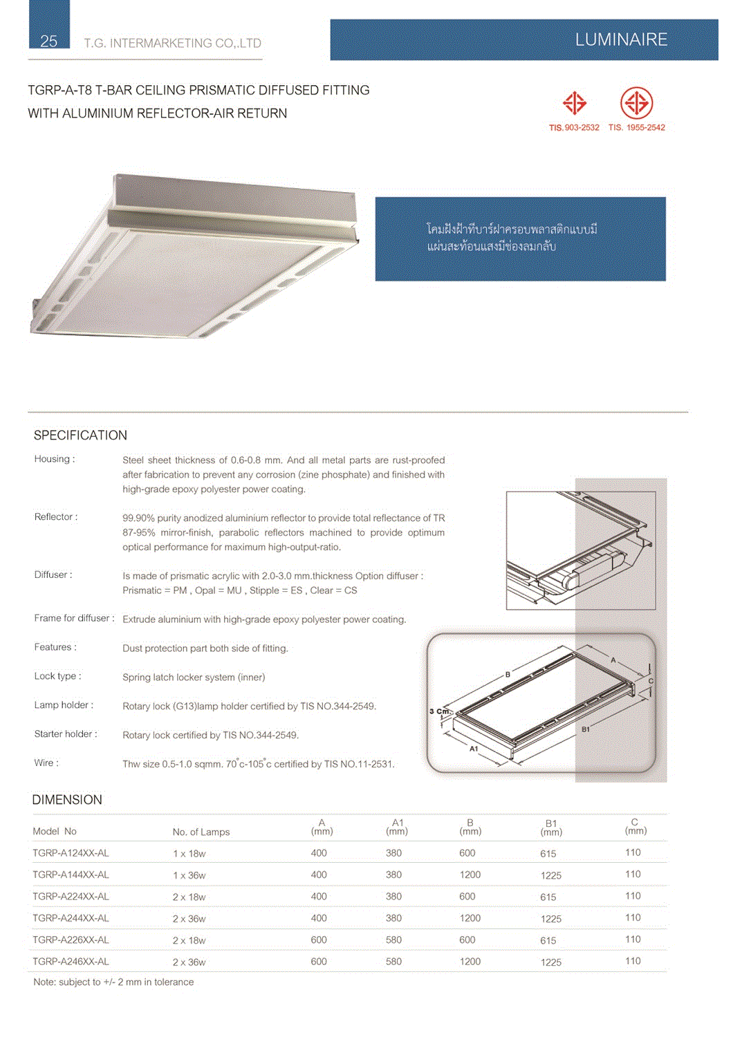 โคมตะแกรงฝังฝ้า T8 2IN1