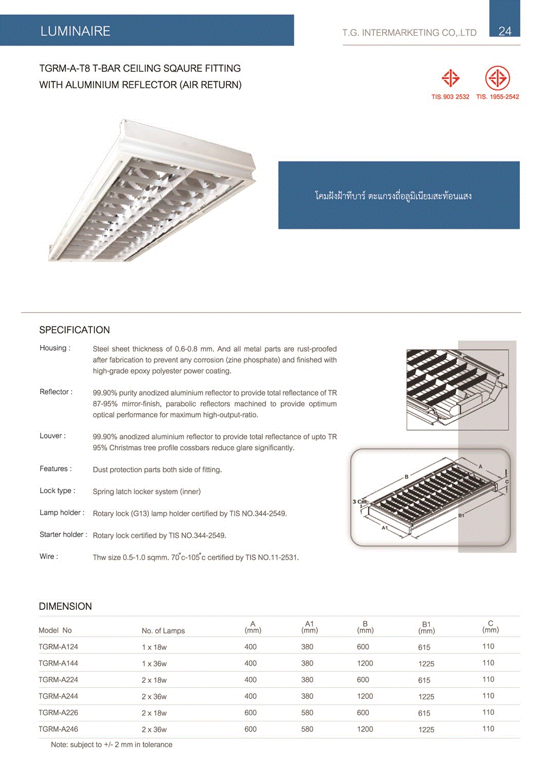 โคมตะแกรงฝังฝ้า T5 2IN1