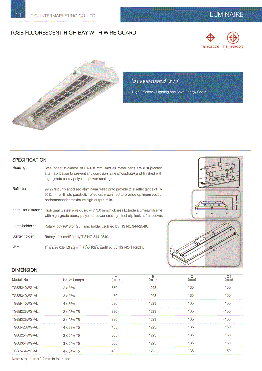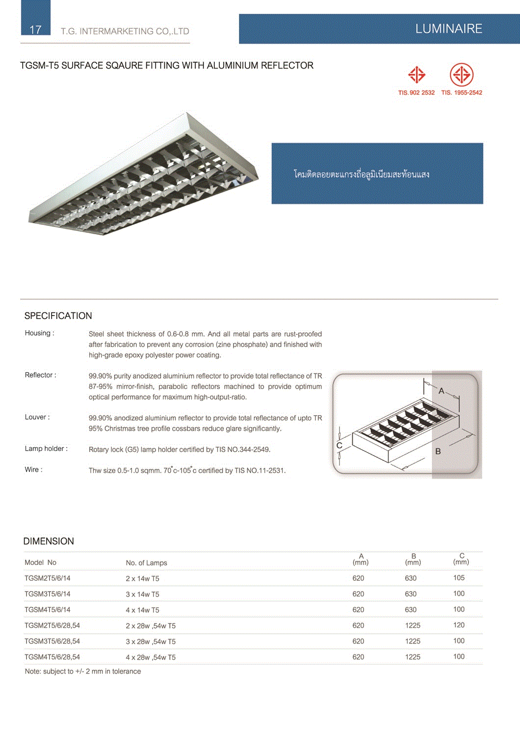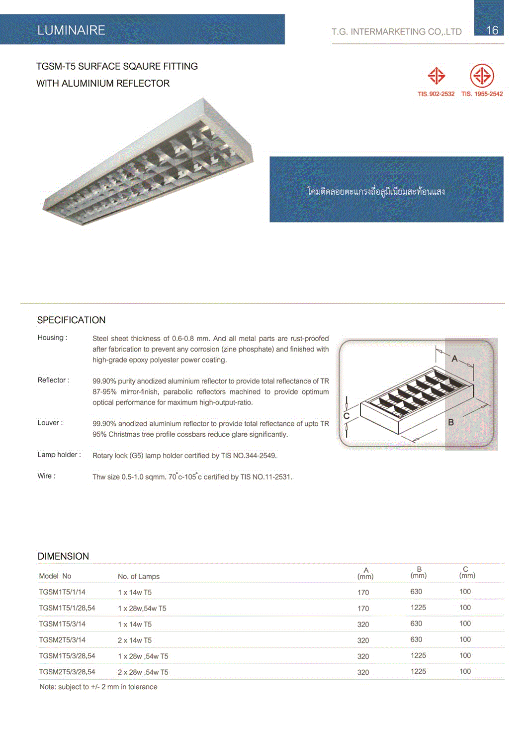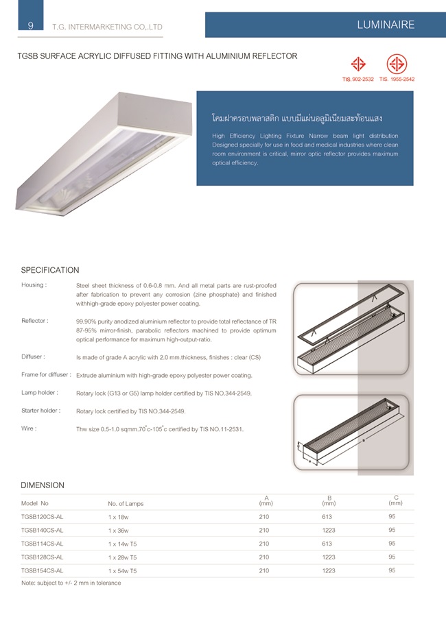 โคมตะแกรงติดลอย T5