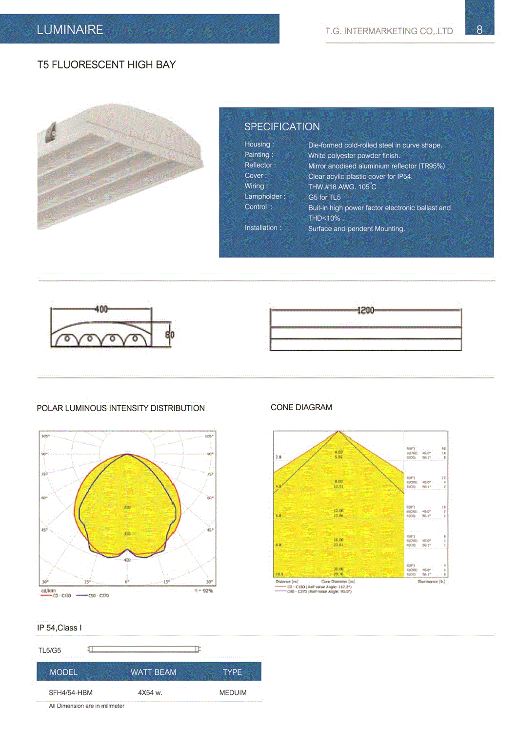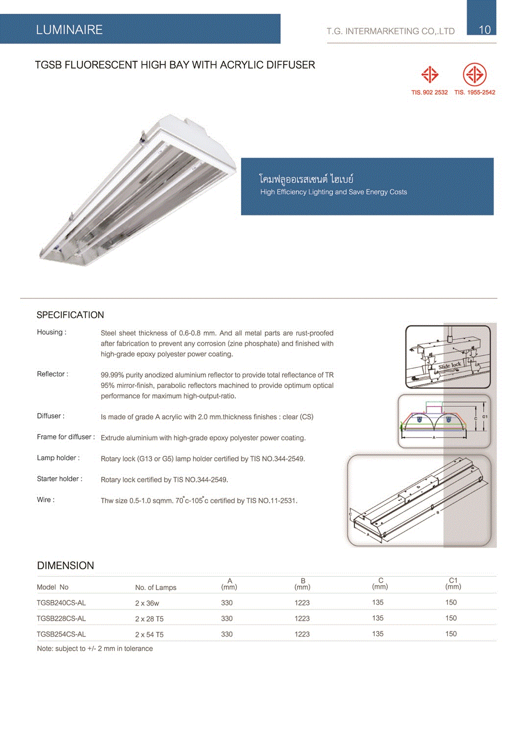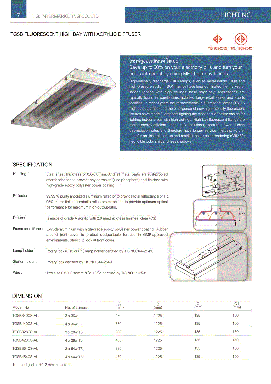 โคมตะแกรงติดลอย T5