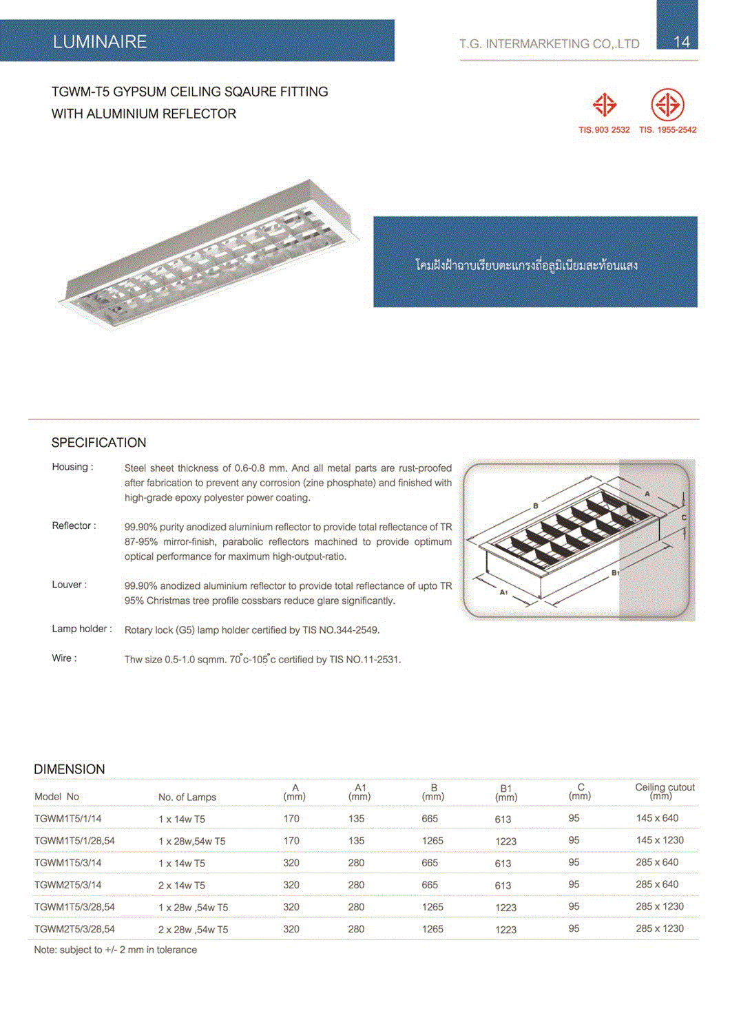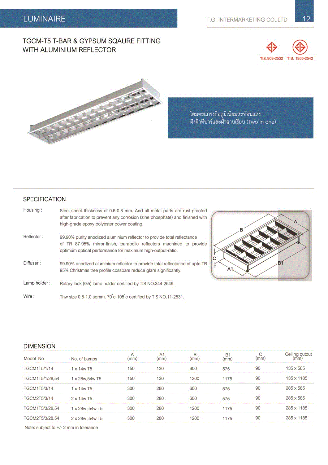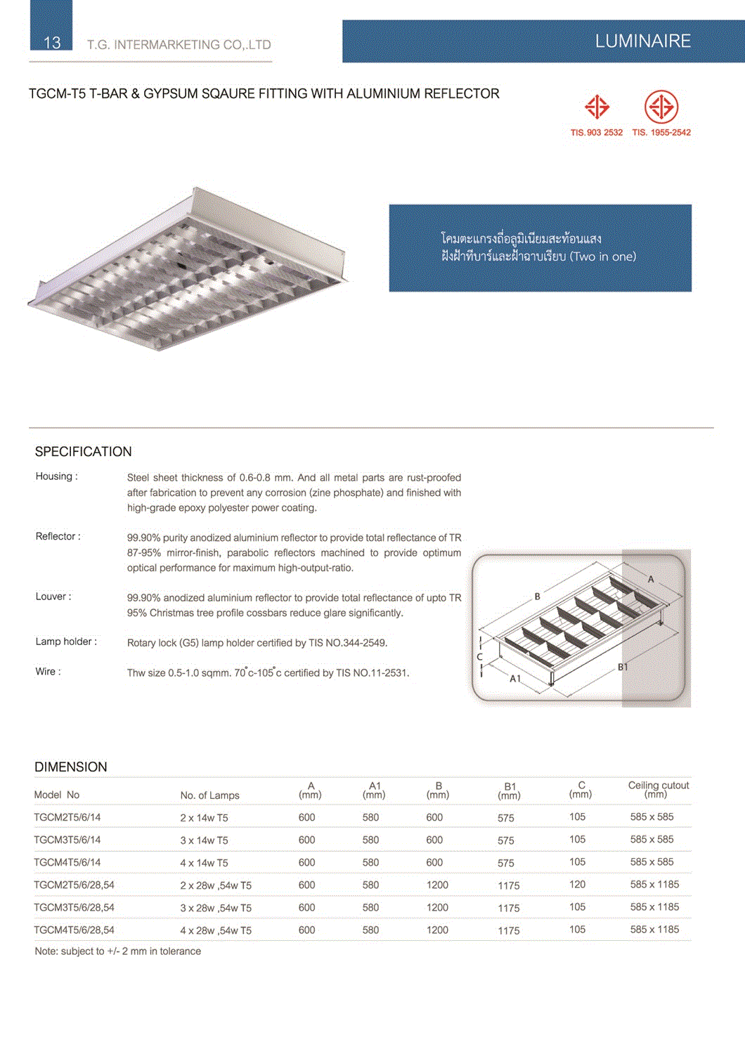 โคมตะแกรงฝังฝ้า T5 2IN1