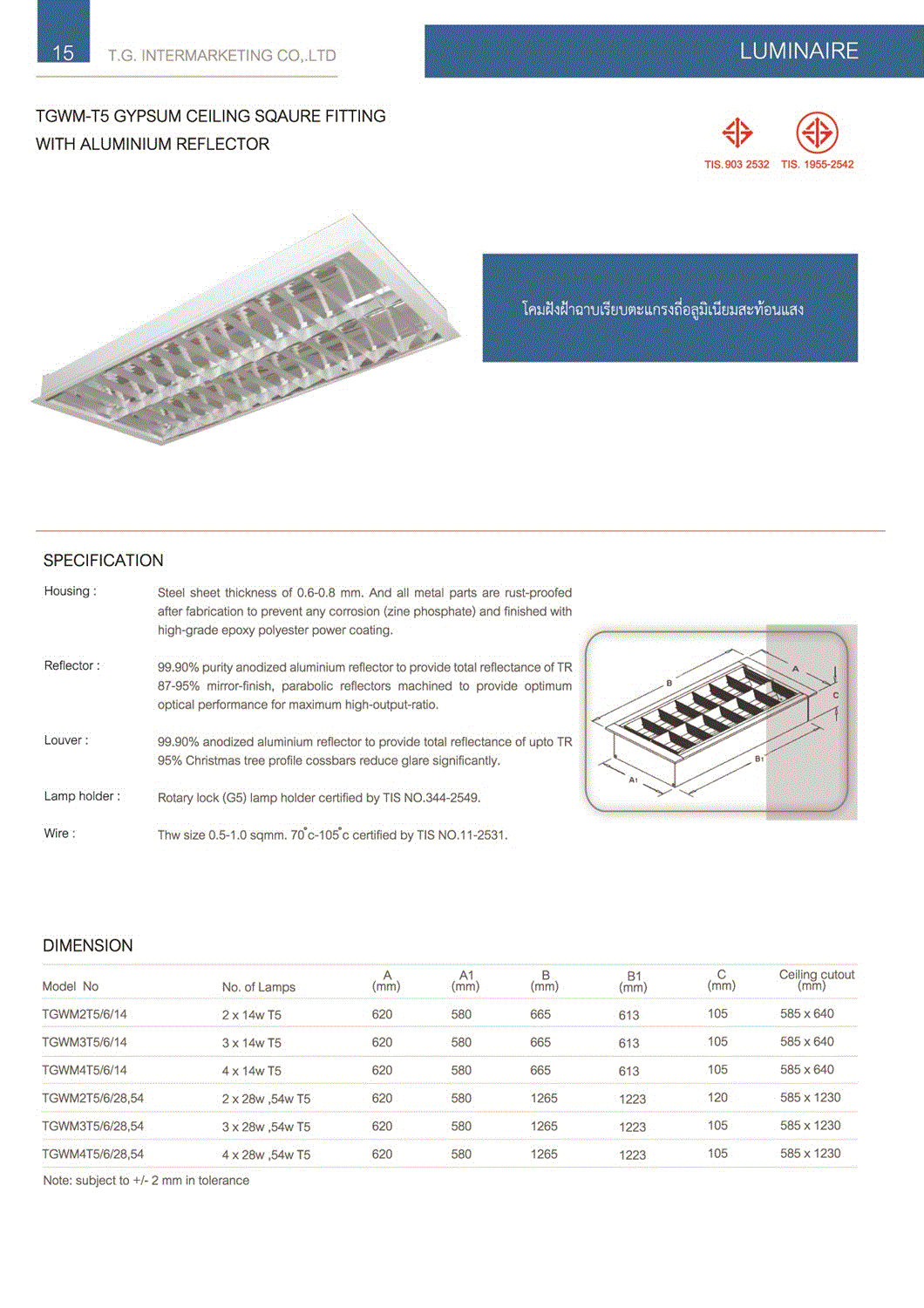 โคมตะแกรงฝังฝ้ายิปซั่ม T5