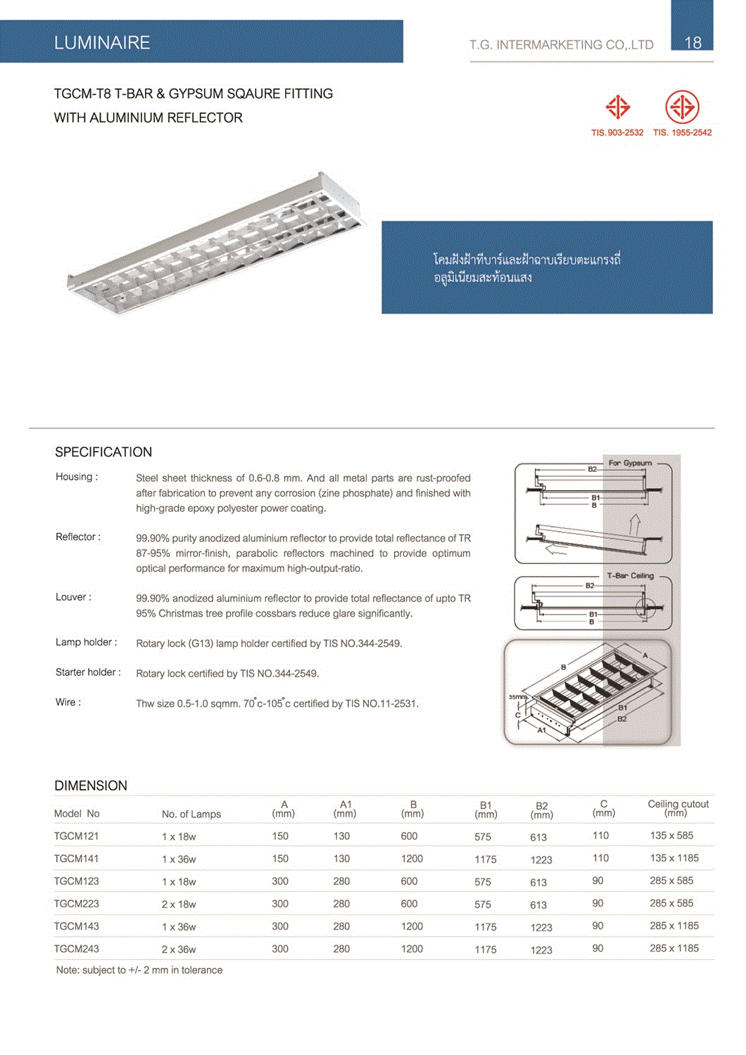 โคมตะแกรงฝังฝ้า T8 2IN1